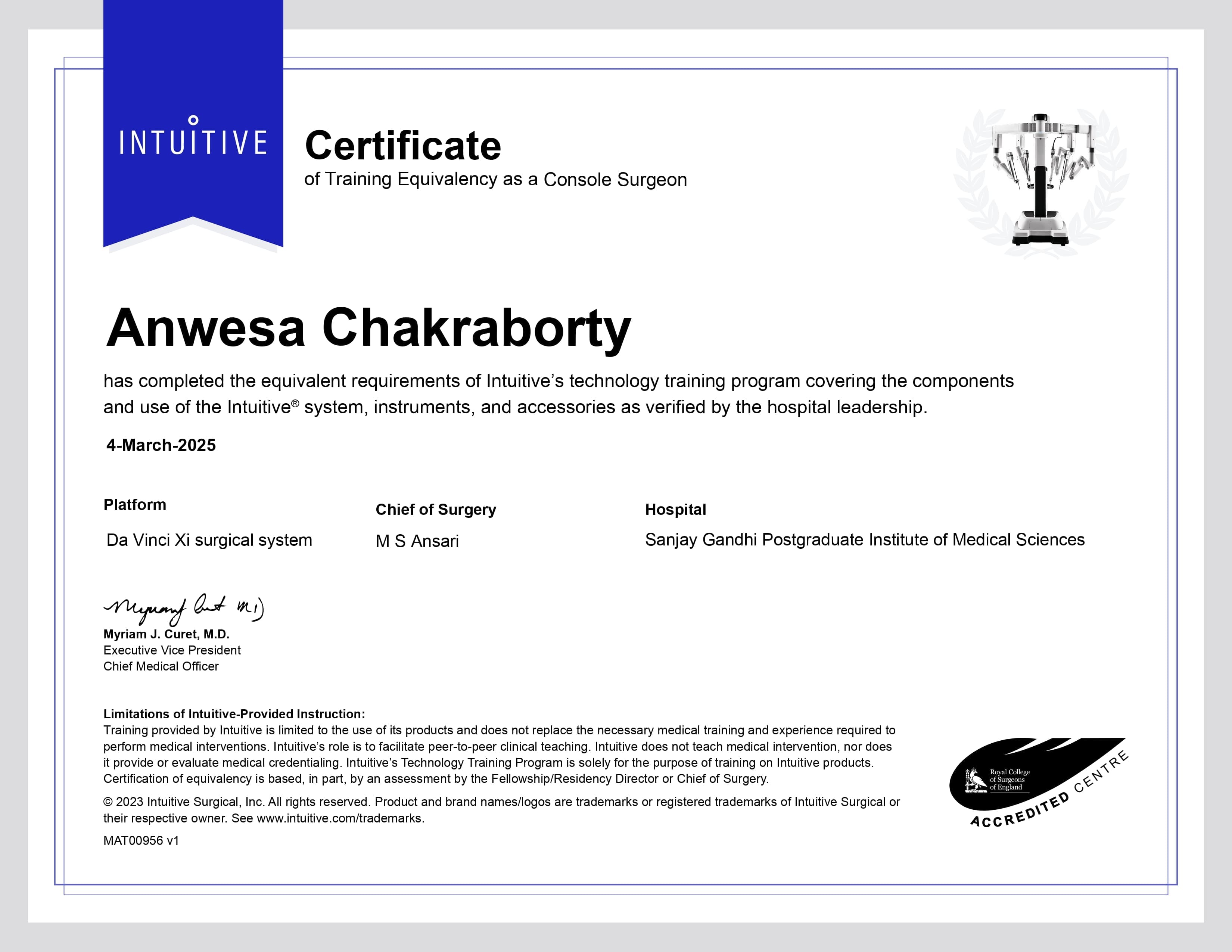 She has extensive experience in managing sick newborns with complex congenital urinary malformations, performing both common and rare pediatric surgical and urological procedures, and addressing critical urological emergencies in children. Having trained in high-volume government institutions, Dr. Anwesa is highly skilled in handling critically ill infants requiring surgical intervention. Her expertise extends to voiding dysfunctions, pediatric reconstructive urology, and urodynamics, making her a trusted name in pediatric urology and robotic surgery in Lucknow.
